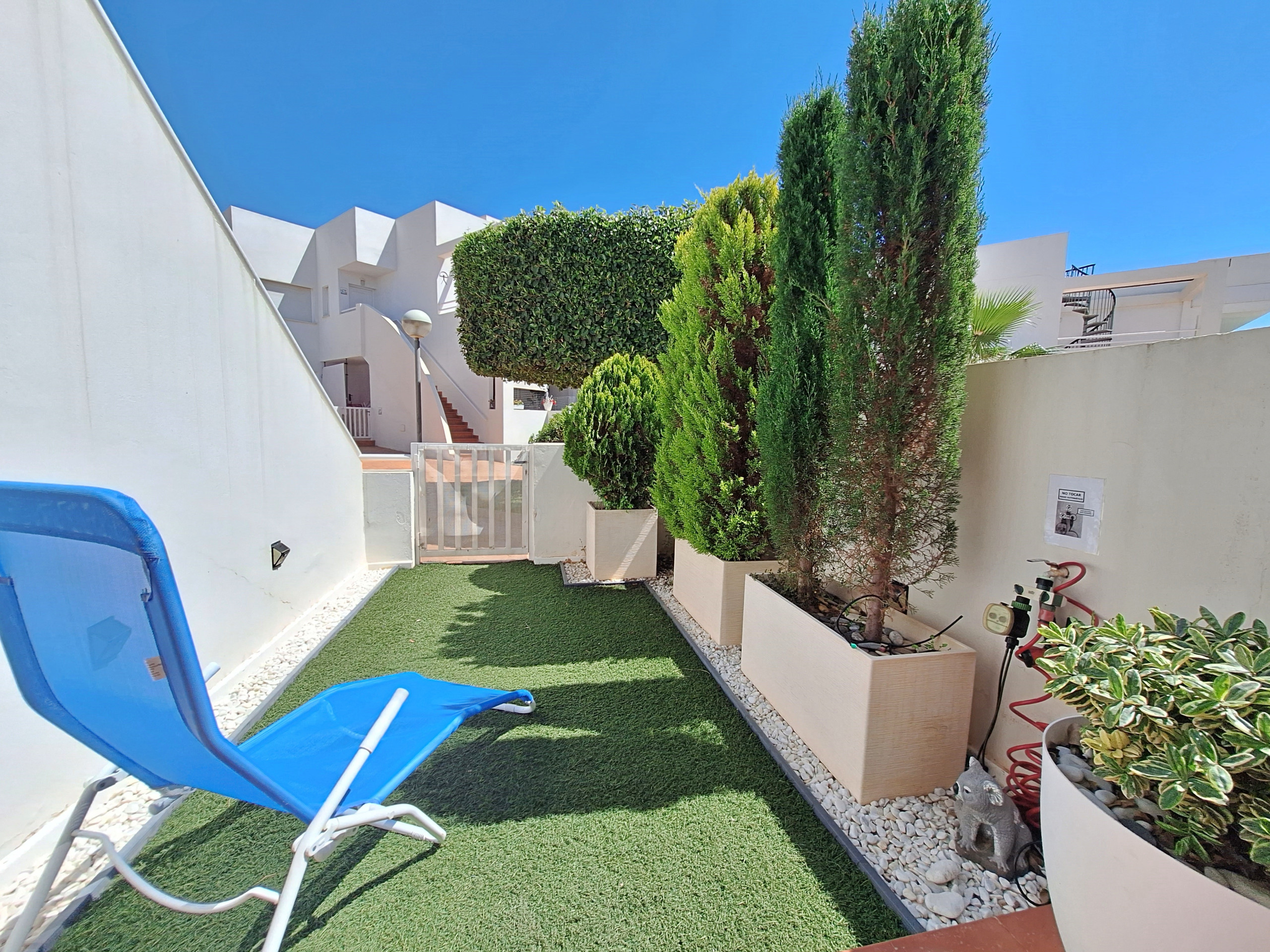 In the Jardines de Palomares urbanisation, in the village of Palomares, with communal swimming pool (open in summer) and landscaped areas. Several bars and restaurants and a supermarket in the village. The nearest beach is less than 5 minutes' drive away.