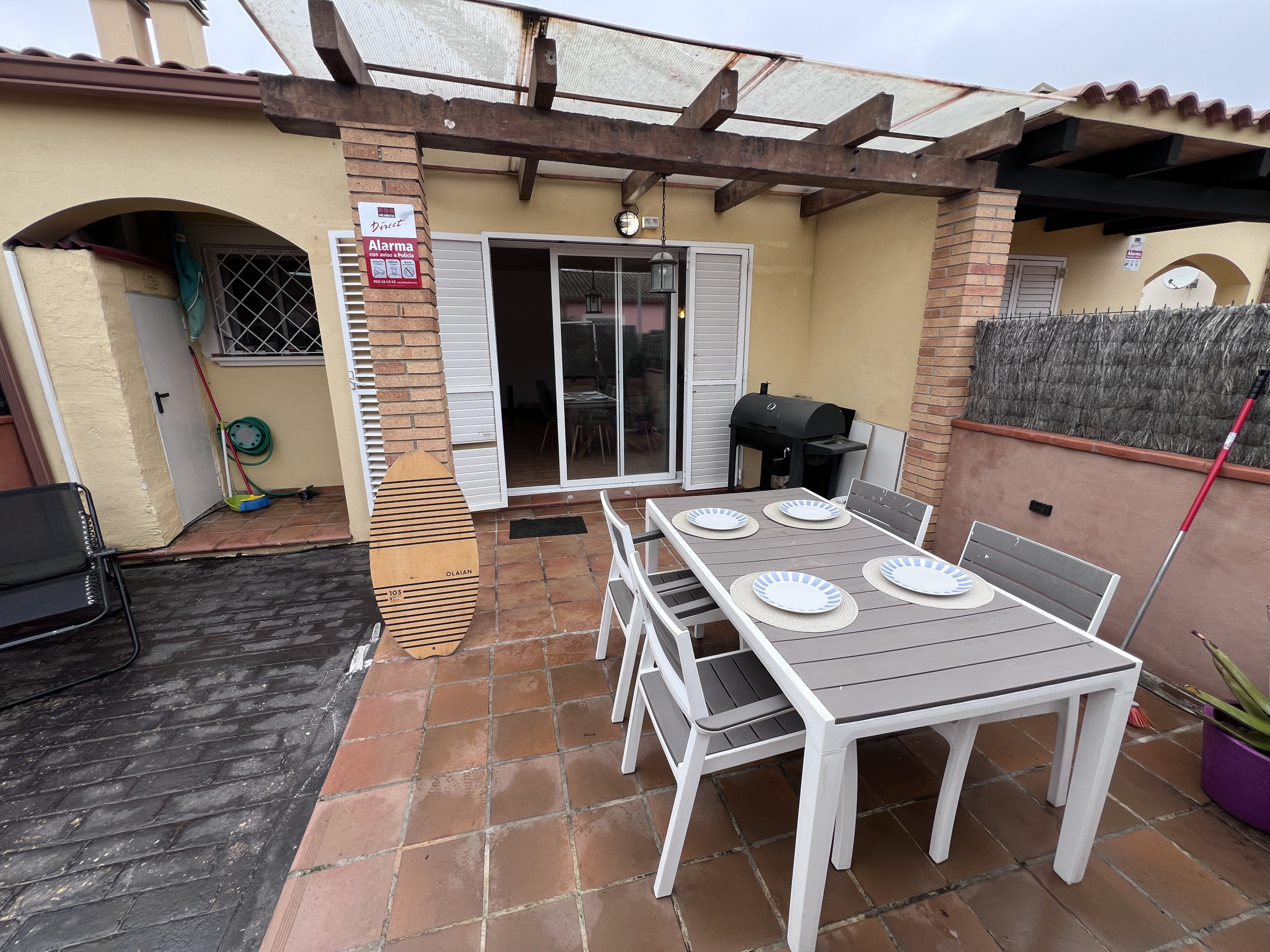 The outdoor space is private and features a well-maintained front patio with garden furniture and a barbecue, perfect for sharing special moments with family and friends. The rear area offers multiple possibilities, allowing you to design and personalise your own relaxation space. Both terraces are ideal for enjoying the sunshine and sea breeze.